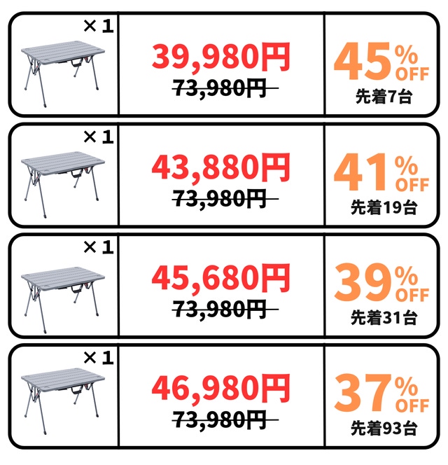 【makuake特別早割 50%OFF】ローリングキャンプテーブル×5