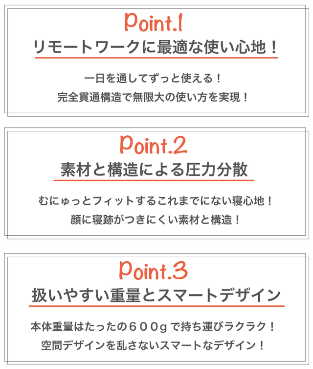 - リモートワーク中の休憩からガッツリお昼寝まで!家でもオフィスでもあらゆるシーンで使えるマルチ枕