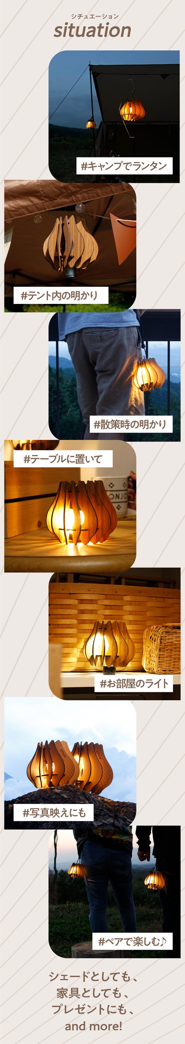 tamanegiランタンシェードは、キャンプ・野外フェス・BBQなどのアウトドアにはもちろん、室内インテリア・間接照明等、日常的に使える木製ランタンシェードです。