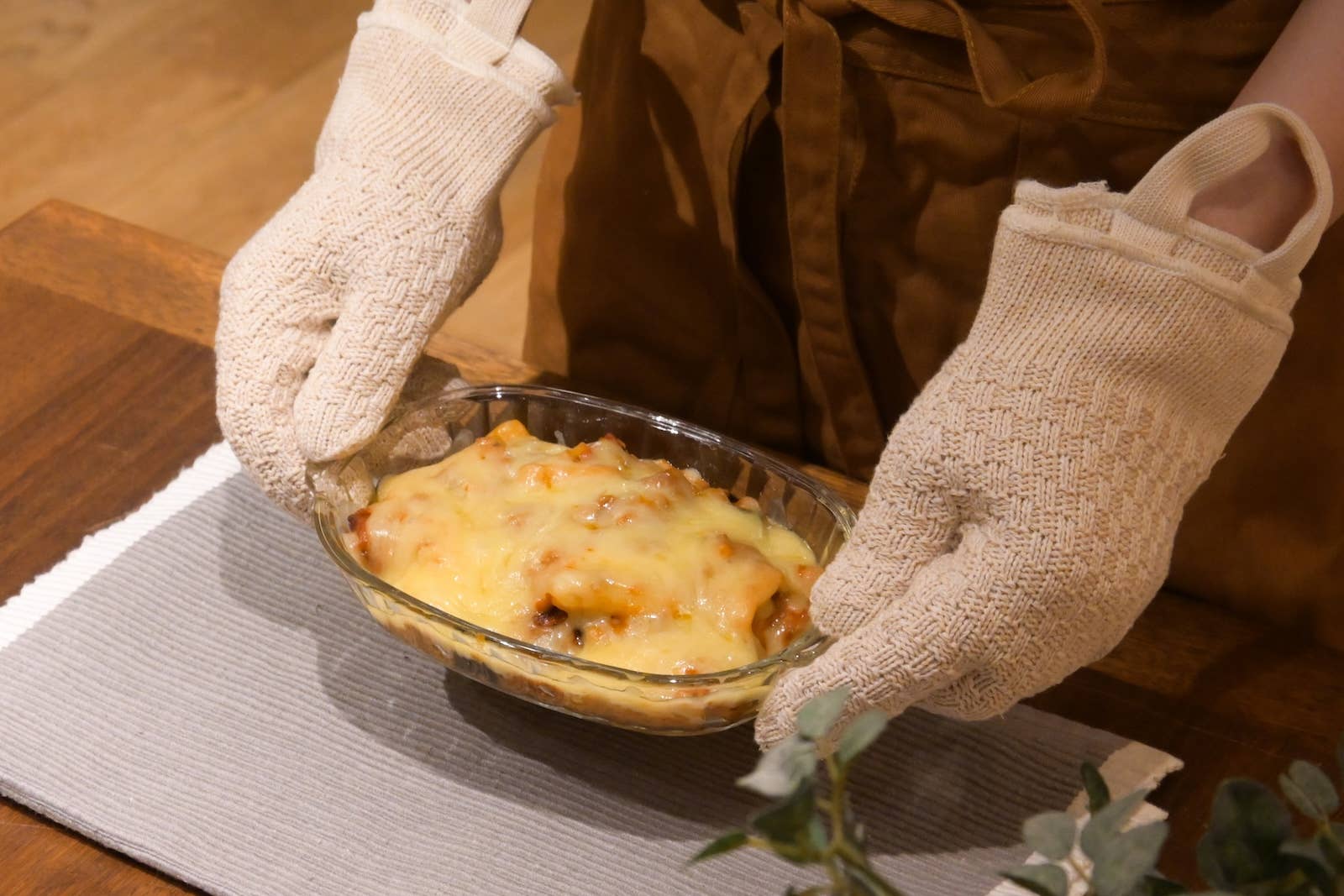 『5本指のグローブタイプキッチンミトン!指先が自由に使えて熱い容器も安定して掴める』