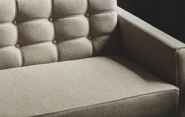 従来のソファでは、座面にボタン留めがあるものが多くありました。