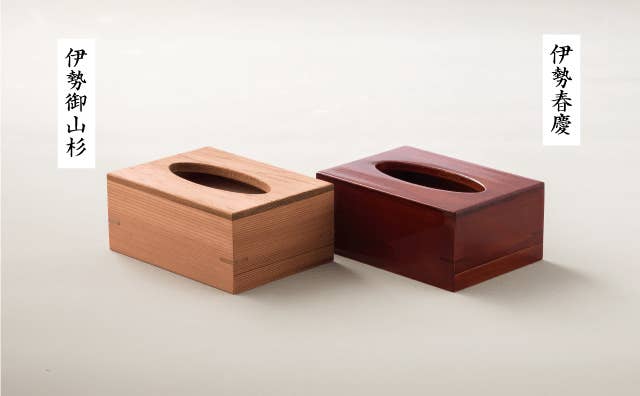 今回はポケットティッシュ箱です!御山杉と伊勢春慶塗りの2種類ございます!