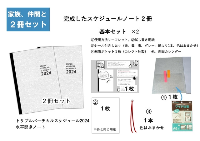 内容物:完成したスケジュールノート2冊、+基本セット(2セット)※