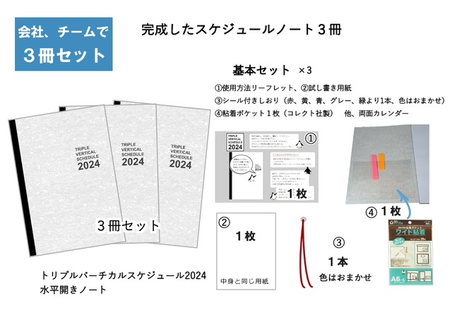 内容物:完成したスケジュールノート3冊+基本セット(3セット)※