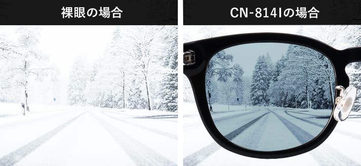 CN-814Iに採用しているハイコントラストCR偏光レンズは、可視光線透過率をスモークレンズで35%、ブラウンレンズで37%と、比較的明るく設定しています。このことによって視界の明るさを保ちながら自然に近い色合いを確保します。
