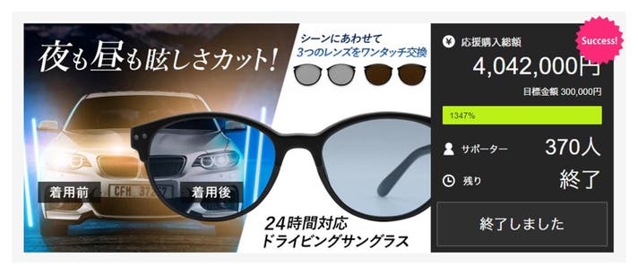 2019年5月Makuakeで初めてプロジェクトを開始し、今回100作品目のプロジェクトとなります。これまで20,000名以上の方々に応援購入いただいており、皆様の温かいお言葉に支えられてまいりました。Makuakeをご利用いただいている方々に本当に良いサングラスをお届けいたしたく、日々商品開発を行っています。安心して応援購入いただきたく、よろしくお願いいたします。