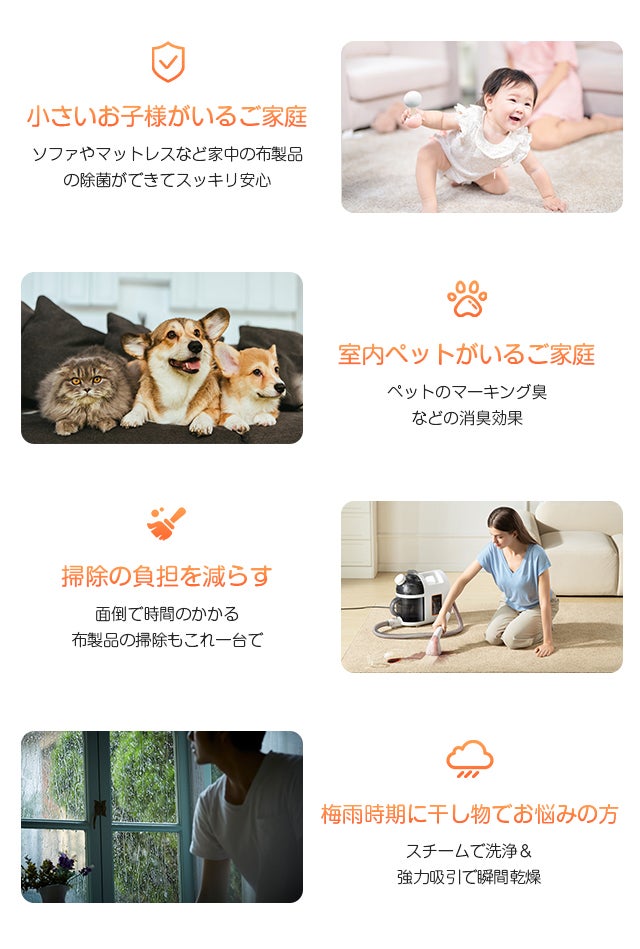 そう言った、消費者の持つ日々生活する上での小さな悩みの声をきっかけに、布製品の洗浄ができる多機能のクリーナーを輸入したいと思います。