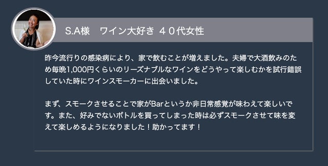「Makuake(マクアケ)」は、実行者の想いを応援購入によって実現するアタラシイものやサービスのプラットフォームです。このページは、 プロダクトカテゴリの 「〜大人の1人時間を格上げ〜 新感覚!燻して味わいを整える「ワイン・スモーカー」」プロジェクト詳細ページです。