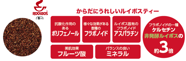 - 高級「ルイボス・クラシック」と希少な非発酵「グリーン・ルイボス」の2種類の有機茶葉を使用