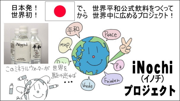 このプロジェクトは、日本の、そして世界の平和を願う想いが詰まったミネラルウォーター「iNochi(イノチ)」をつくり、世界中に広めることを目指したプロジェクトです。世界中の人々が水を飲むとき、少しでも平和を想ってくれたらきっと世界は良くなっていくのではないだろうか。そんな想いからこのプロジェクトは始まりました。リターンには、iNochiを特別価格で購入できる権利やオリジナルリングなどをご用意しております!