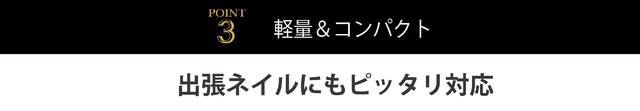 片手でも持てるほど軽量かつコンパクト設計。持ち運びもでき、お友達にネイルをしてあげるためや出張ネイルにも◎。