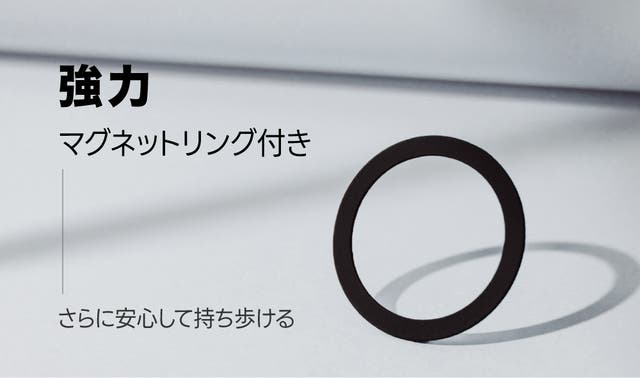 - マグネットリング付きで大変強い!スマホにくっつけて手ぶらで楽に持ち歩ける。