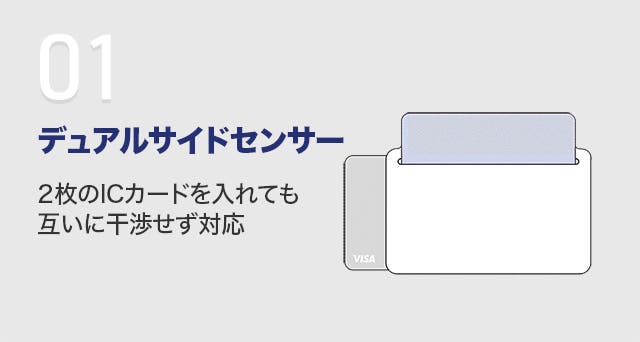 - 台湾特許取得の自社AXAR TEX技術搭載!ICカード2枚入れても両方読み取りできる。