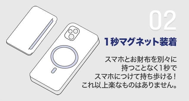 より強い磁力で財布を落とすことなく、しっかりと吸着させます。