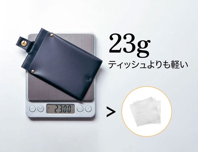 極薄に削り出した0.7mmの天然ベジタブルタンニングレザーを使用し、革素材のしなやかさと軽さを絶妙なバランスで両立させました。
