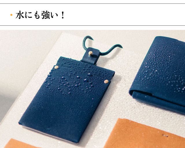 ベンゼン染め技術で革繊維を通じて色素が染色されているため、簡単に剥がれたりせず水も弾きます。