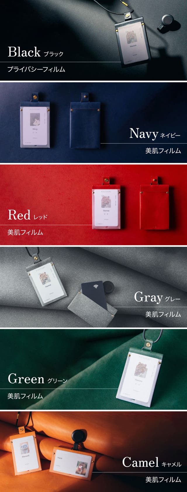 ネイビー・レッド・グレー・グリーン・キャメルにはマット白の美肌フィルムを使用し、ブラックはマット黒のプライバシーフィルムを使用しました。