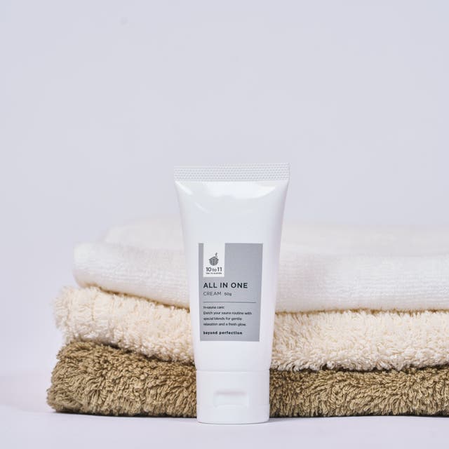 サウナの全てのルーティンが終わり、洗顔とシャワーが終わってサウナから帰る直前に顔の保湿用のオールインワンクリームとしてお使いください。