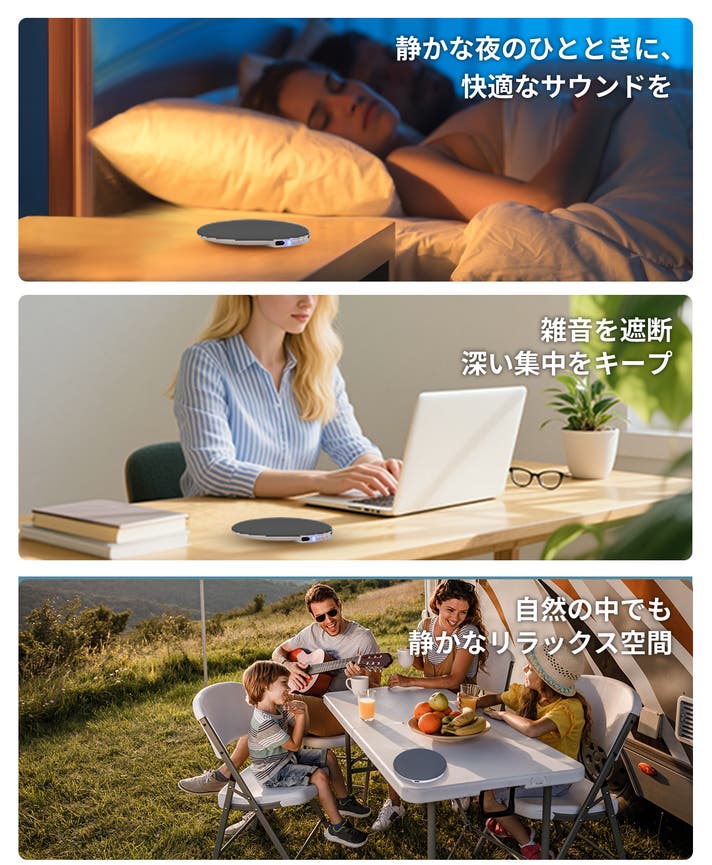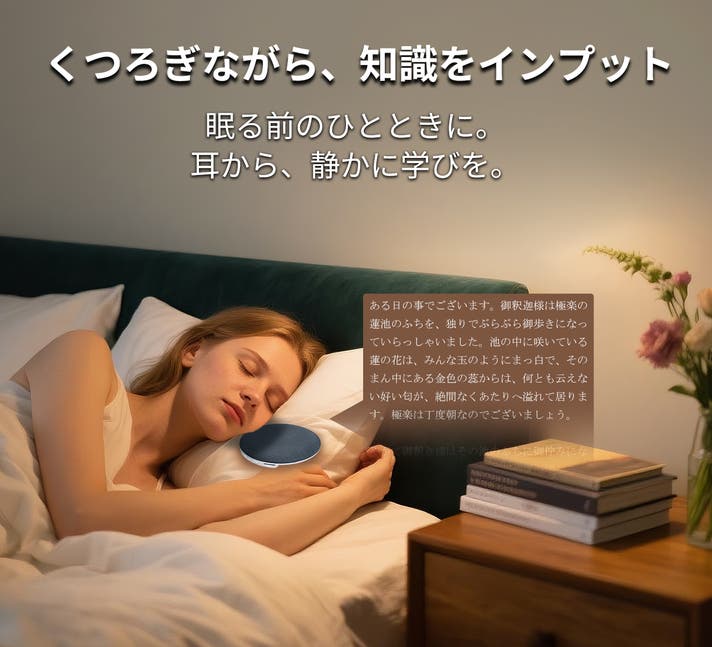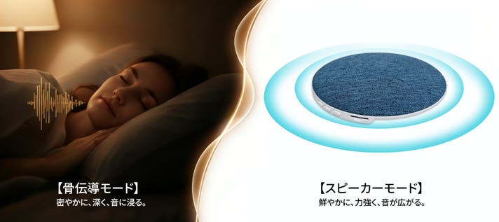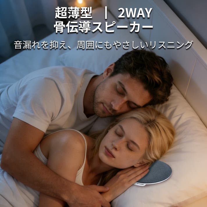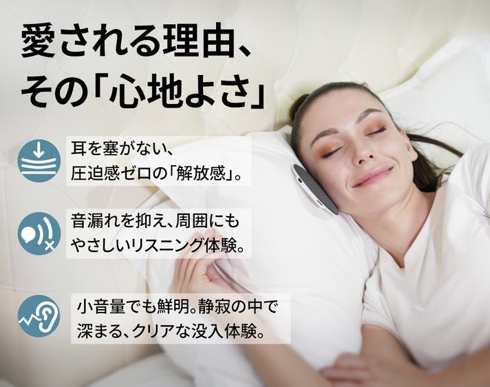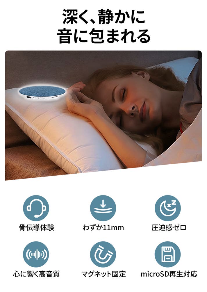 - わずか11mmの極薄設計。枕の下に置くだけで、耳を塞がず「自由」に響く新体験。