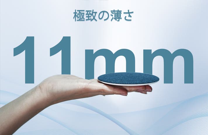 厚さわずか11mm。 骨伝導技術と高音質スピーカーをこの薄さに凝縮することで、枕の下に置くだけで「何も身につけていない」ような自由なリスニングを実現。
