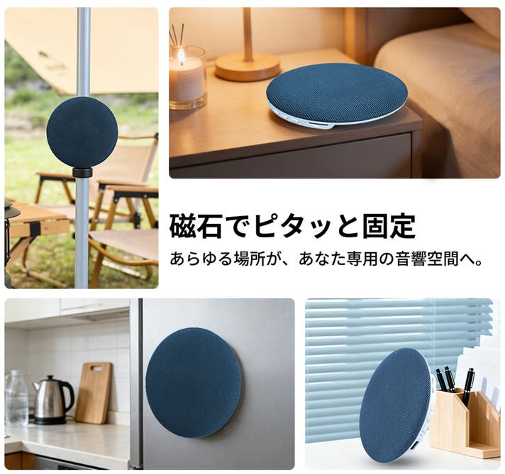 マグネットベースを採用し、ベッドフレームやデスクの縁、テントポールなどの金属面にしっかり固定。
