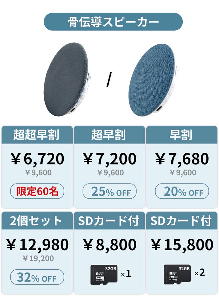 【贅沢ペア】SDカード付・骨伝導スピーカー