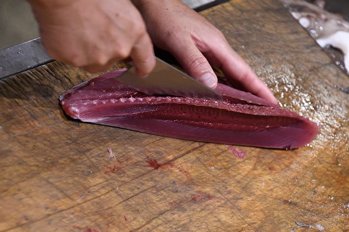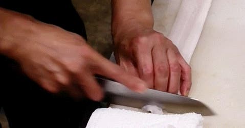 HIKA‐百年之極味‐は刃の入りが抜群に良いですね。特に印象的だったのは、鱧(ハモ)の骨切り。鱧用包丁と遜色ない切れ味を発揮してくれたこと。骨を切る「シャリシャリッ」というリズムが気持ちよく、迷いなく刃を入れていけます。