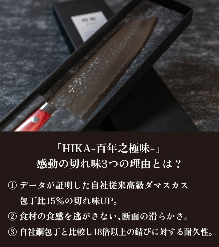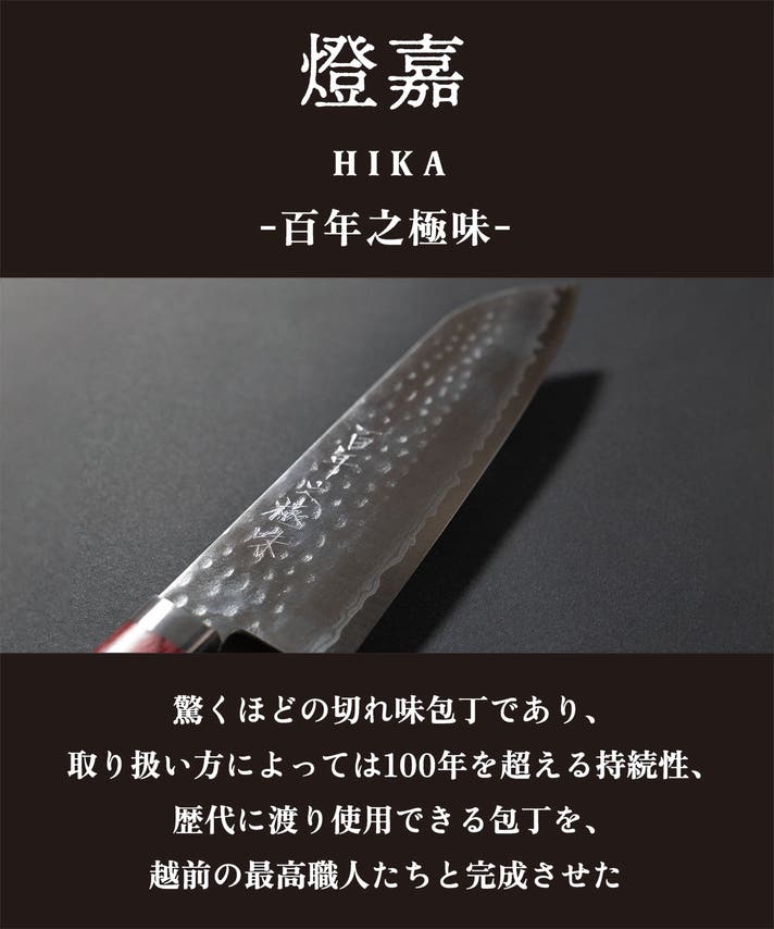 「HIKA‐百年之極味‐」は、700年以上の歴史を誇る打刃物の産地、福井県越前市でつくられています。