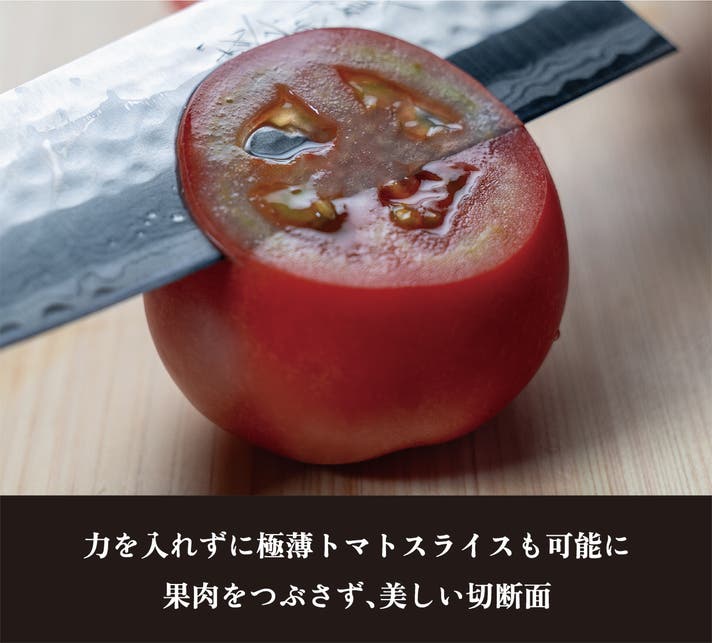 - 食感まで変える、鋭さの理由。断面が驚くほど滑らかで、細胞を潰さず素材本来の旨味が極みだつ。