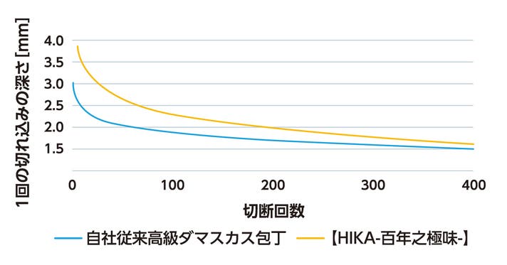 切れ味が低下する約半年間(400回)使用を想定した比較試験において、優れた切れ味の持続性をキープ