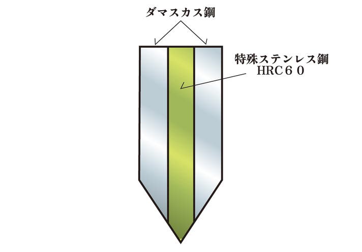 芯材に使用している特殊ステンレス鋼は優れた切れ味と持続性、強靭性を実現。