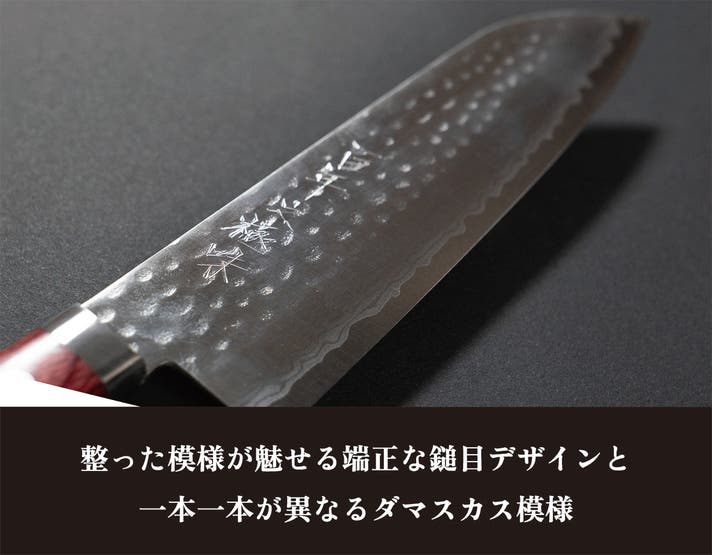 切れ味と耐久性を兼ね備えたダマスカス包丁。百年以上の使用に耐えうる、まさに一生ものの逸品です。