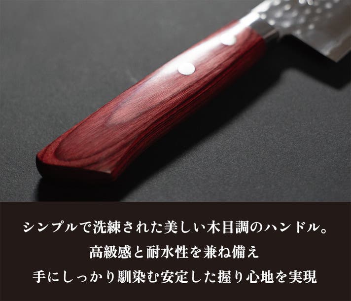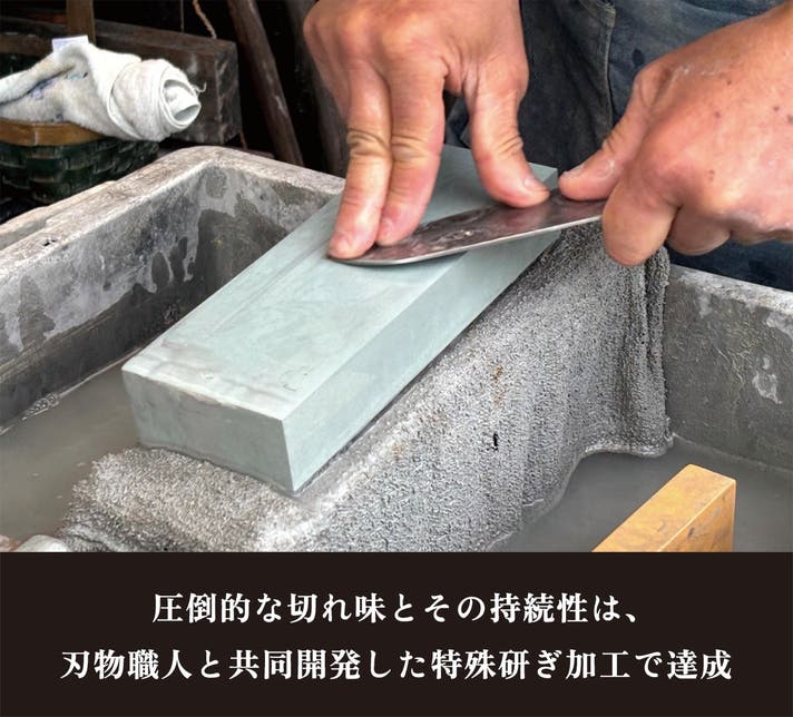- 職人が鍛えた特殊ステンレス鋼による究極の刃。切れ味データが証明する「違い」を日々の料理で体感。