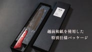 A:越前和紙を使用した専用の化粧箱にお入れし、贈答品としても自信を持っておすすめできる仕立てです。