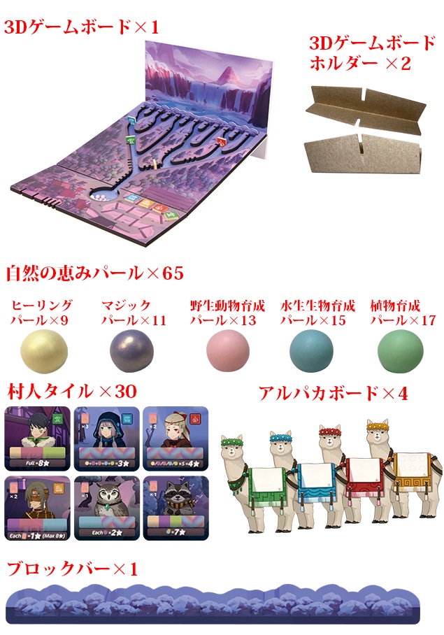 - 美しい3Dボードと高品質なコンポーネンツは、広げるだけでテーブルが賑やかに!