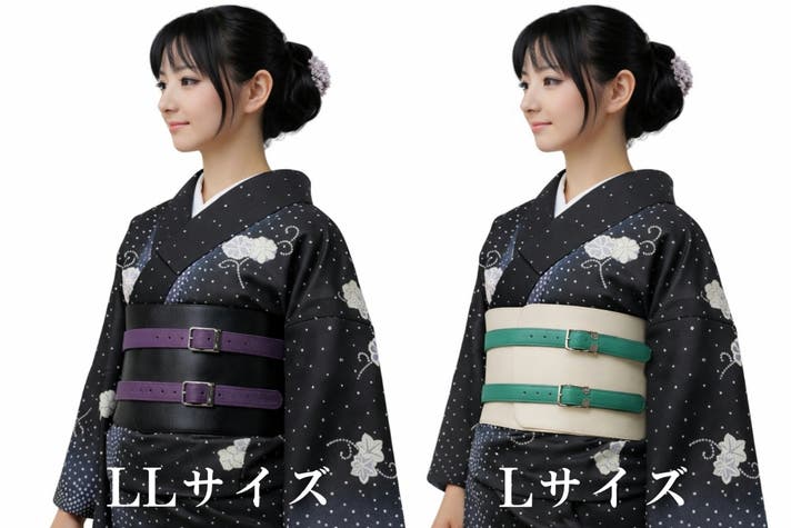 ■ 着物初心者でも、細ベルトを引いて留めるだけで装着できました。