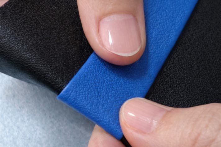 合わせる革は、高級バッグにも用いられる型押し本革。
