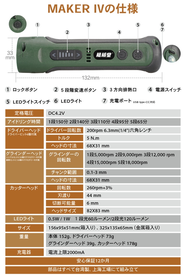 今回ご紹介するMAKER IV ペン型マルチ電動工具は、