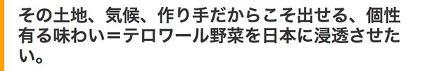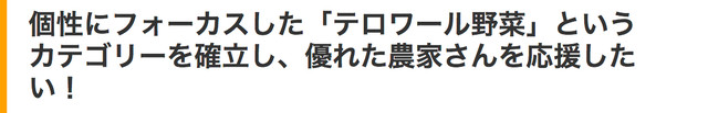 そこで考えたのが、「ビール」に対する「クラフトビール」のように「一般的な野菜」に対して「テロワール野菜」という「個性」にフォーカスした新しいカテゴリーを作り、普及していくことです。