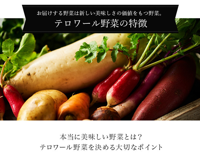 テロワールとはフランス語で生育地の地理、地勢、気候による特徴を意味する単語。 美味しい野菜を一番表現している言葉と判断し、採用いたしました。