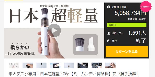 第一弾【178gミニハンディ掃除機】のプロジェクトついて、たくさんのサポーター樣からご応援購入いただき、誠にありがとうございました。