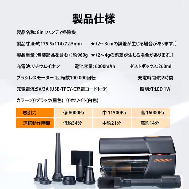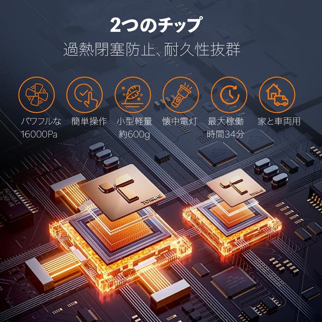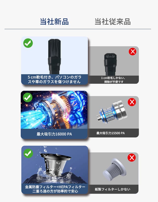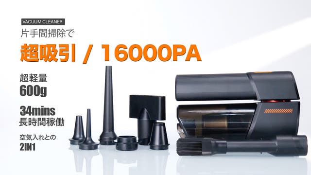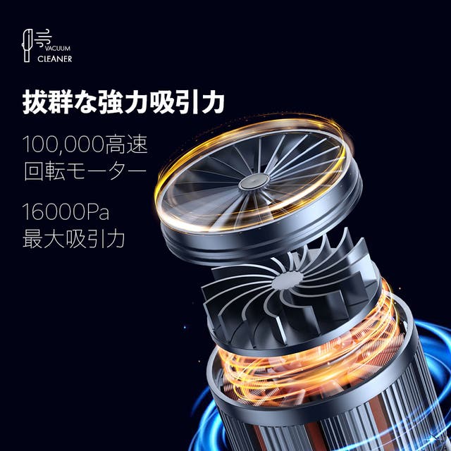 驚くほど強力な吸引力16,000Pa!車内から家の隅々までスピード清掃、効率大幅にアップ!