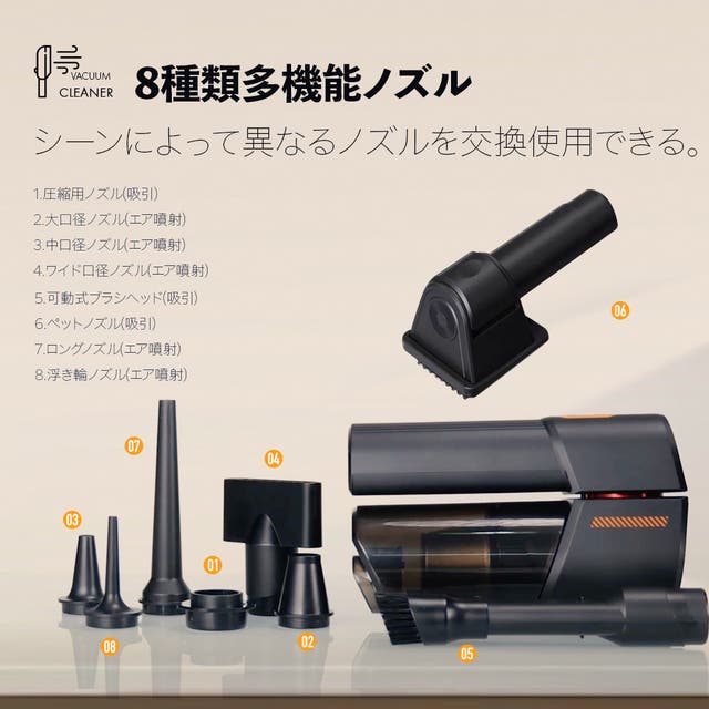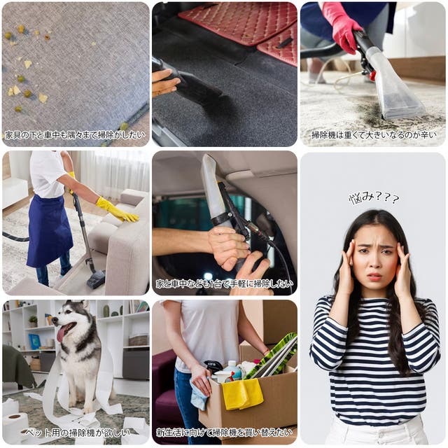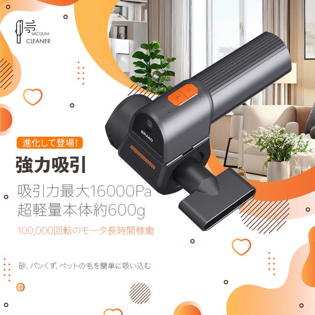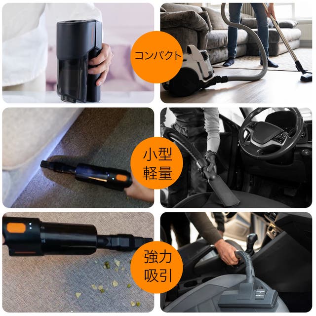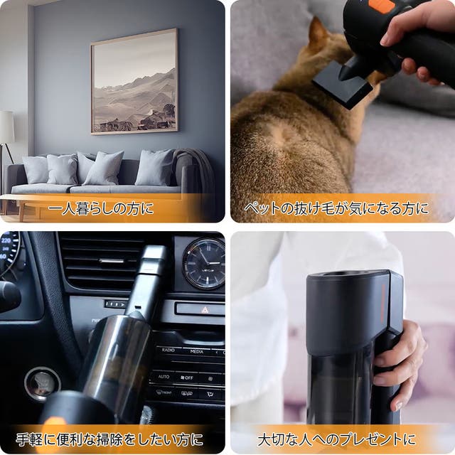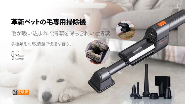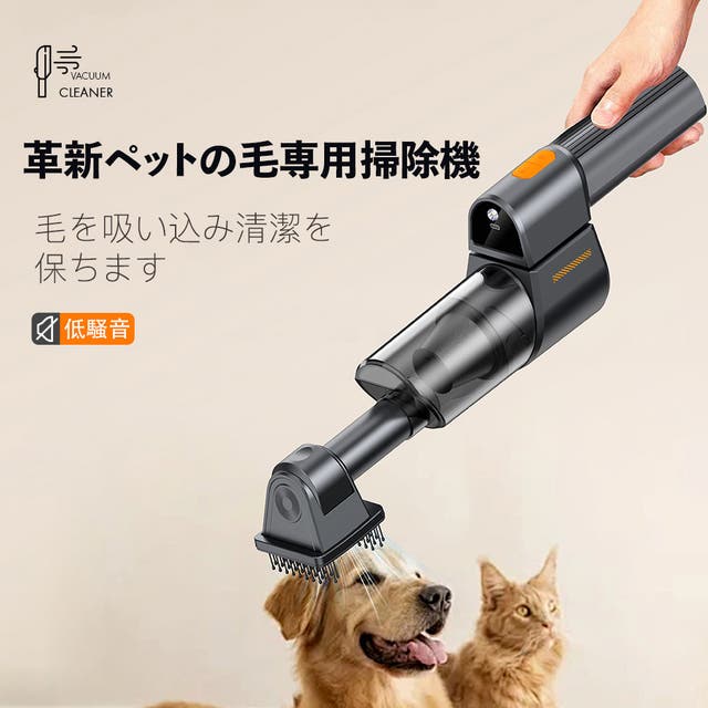 - ハンディ掃除機革新!ペットの専用ノズル付き!低騒音、毛が吸い込まれて清潔を保つ。