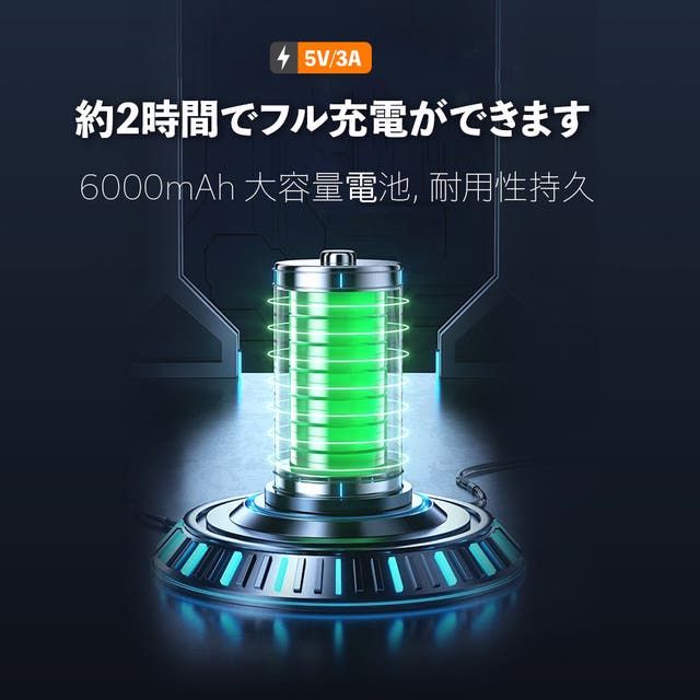 6000mAhの大容量バッテリーを内蔵し、最大約34分間の連続稼働ができます。