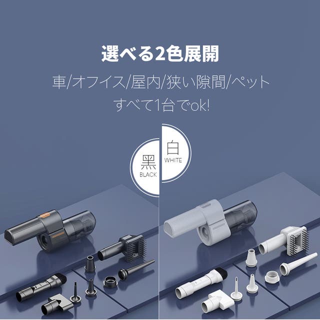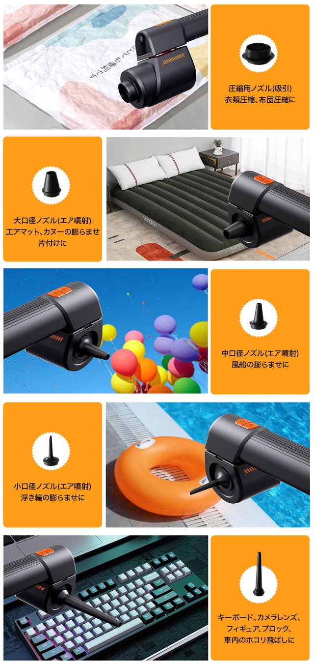 - 超強力吸引16KPa、吸引&エア噴射!車専用のだけではなく、家の中からアウトドアまで大活躍!