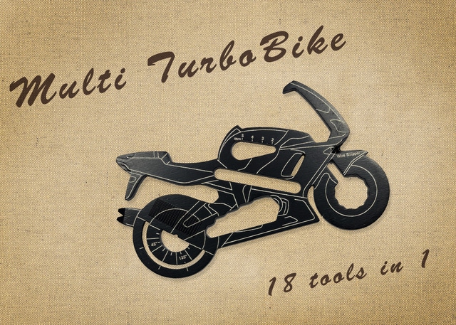 マルチツールと聞くと少しごつごつしたものをイメージしてしまうかもしれません。「Multi TurboBike」そんなイメージを一新し、ポケットや財布にも収納できる程超コンパクトなサイズに仕上げ、バイク型にして見た目もスタイリッシュにしました。