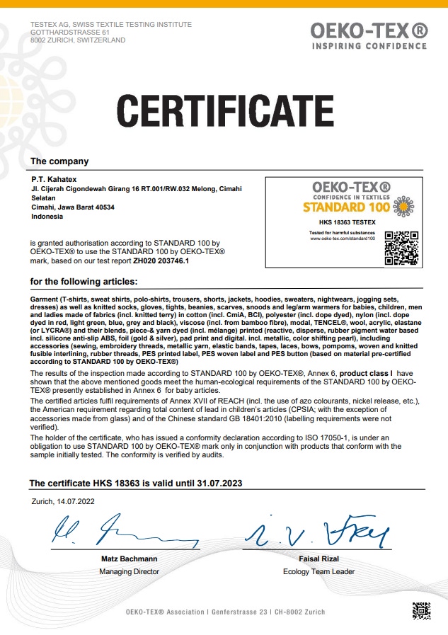 OEKO-TEX® Standard 100の認証を受けており、これは