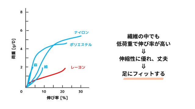 この繊維の特徴が足への快適なフィット感を実現してくれます。