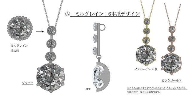 ※ ダイヤモンド、ダイヤモンドのサイズ、デザイン、素材、チェーンの種類が選択できます。