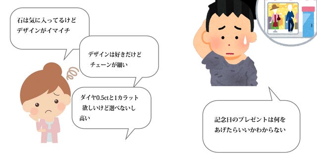 - フルオーダー感覚で頼める 選べるデザイン、素材、チェーン、ダイヤモンドでオリジナルジュエリーに